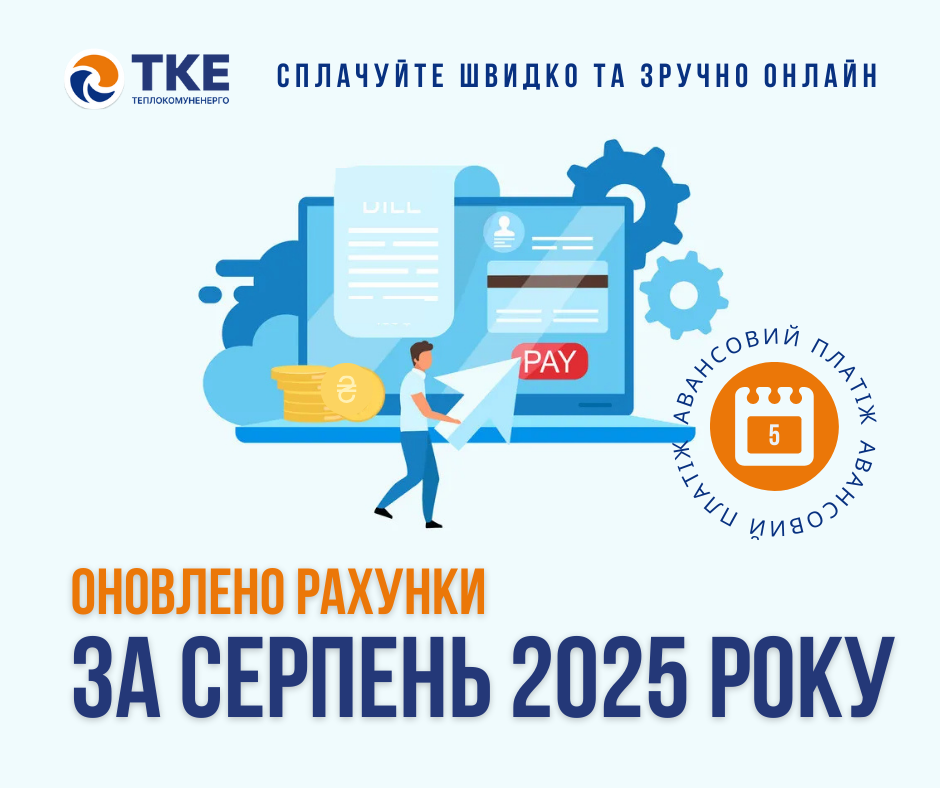 Для того, щоб швидко та в будь-який час розрахуватись за спожиті послуги, використовуйте зручні та доступні онлайн-сервіси: Для споживачів, які сплачують за тепло та гарячу воду через банківські установи та відділення Укрпошти, наші фахівці вже підготували до друку паперові квитанції. Невдовзі вони з’являться у поштових скриньках. Для того, щоб зменшити фінансове навантаження під час опалювального
