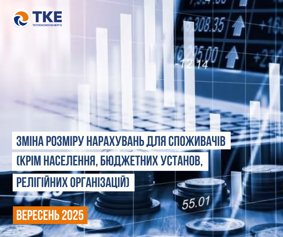 Повідомлення щодо зміни розміру нарахувань за теплову енергію, послугу з постачання теплової енергії та послугу з постачання гарячої води для категорії інші споживачі (крім населення, бюджетних установ, релігійних організацій) за вересень 2025 року