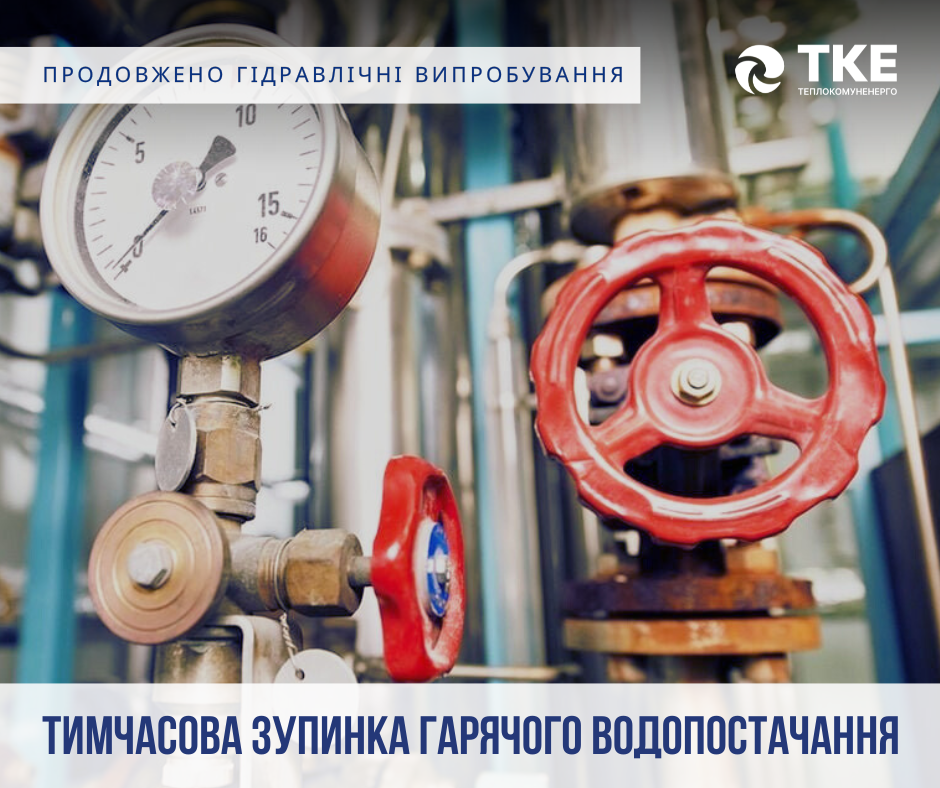 Увага! Продовжено гідравлічні випробування з тимчасовим припиненням гарячого водопостачання