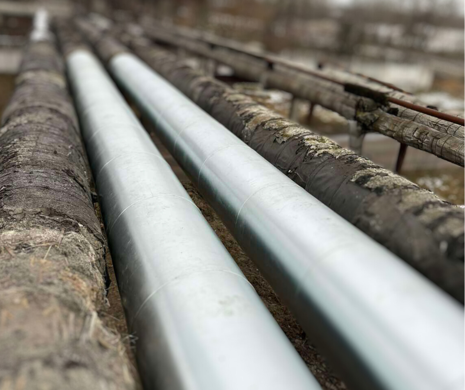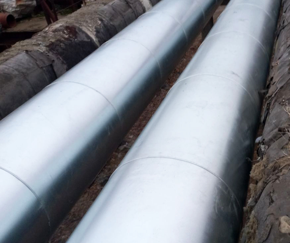 Розпочато ізоляцію труб прошивними мінераловатними матами. Цей сучасний матеріал підвищить енергоефективність системи, а зовнішній захист із оцинкованої сталі забезпечить довговічність трубопроводу.