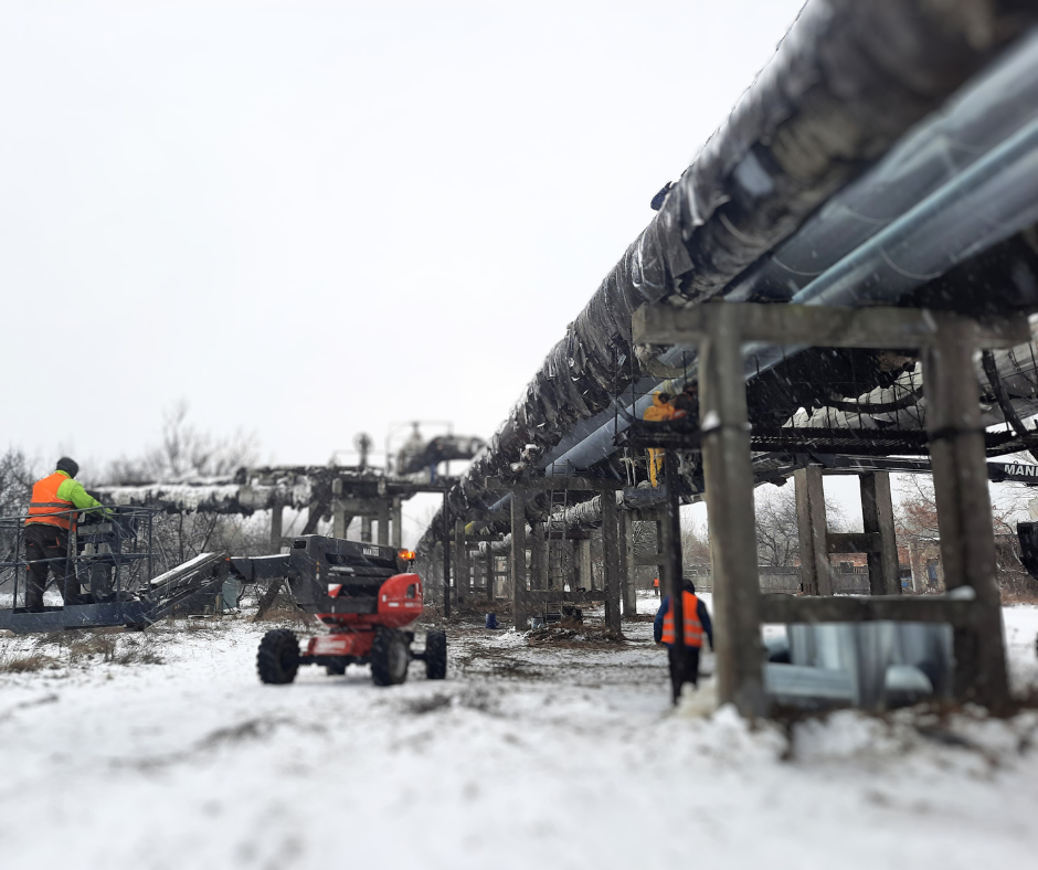 - Висота прокладання тепломереж. На високих опорах труби зазвичай у кращому стані, що дозволяє скоротити час на очищення. Труби на низьких опорах, особливо біля землі, частіше пошкоджені корозією, і їх очищення та підготовка потребують більше часу;