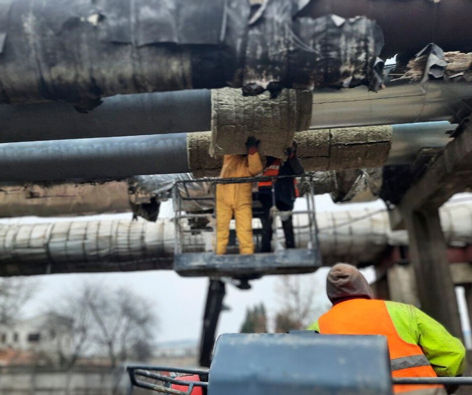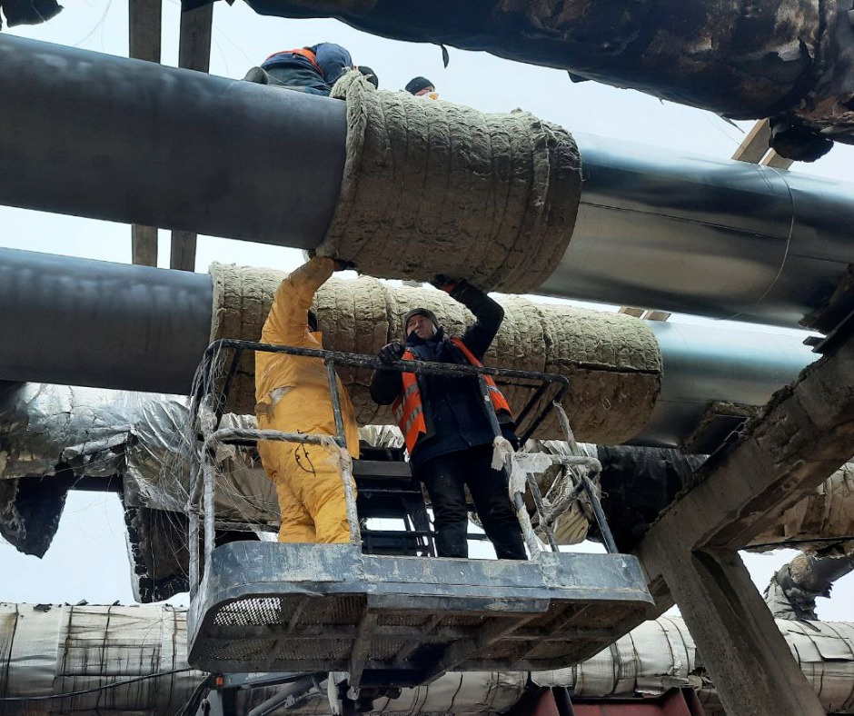 - Виконано нову ізоляцію труб прошивними мінераловатними матами та встановлено зовнішній захист із оцинкованої сталі на 728 п/м.
