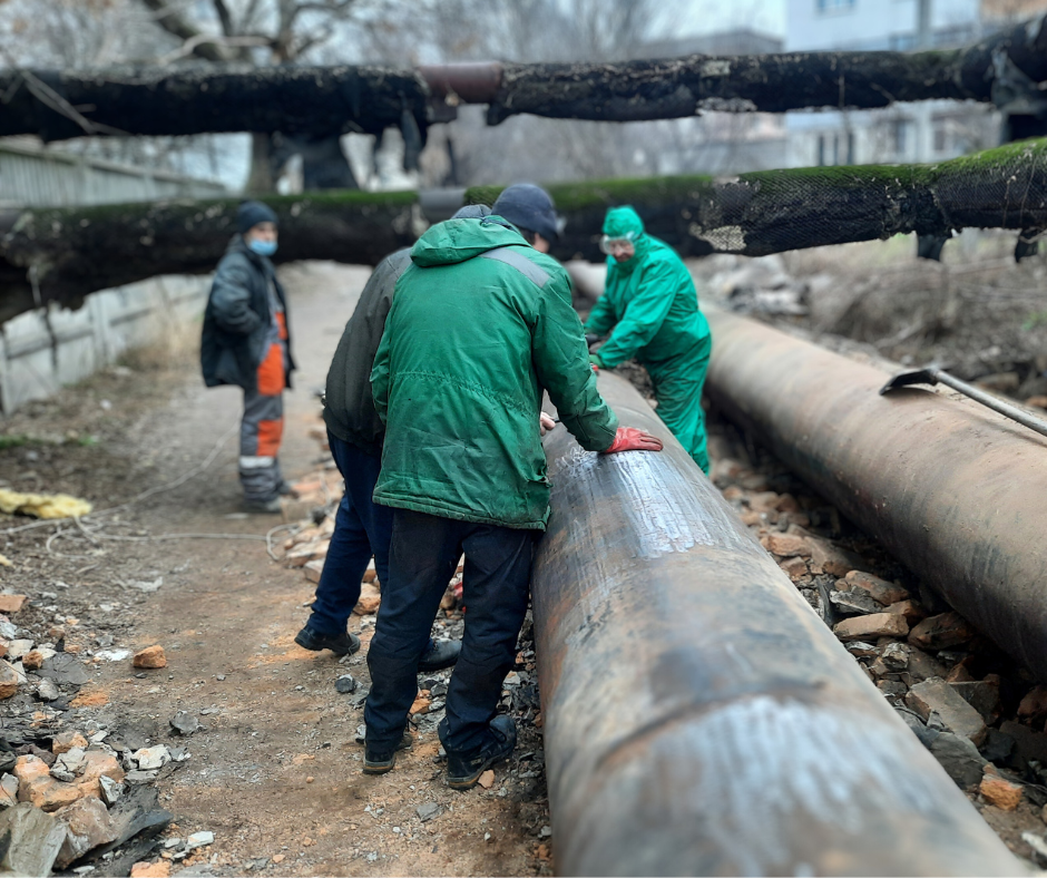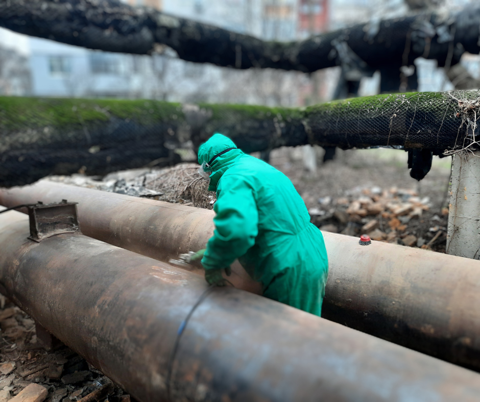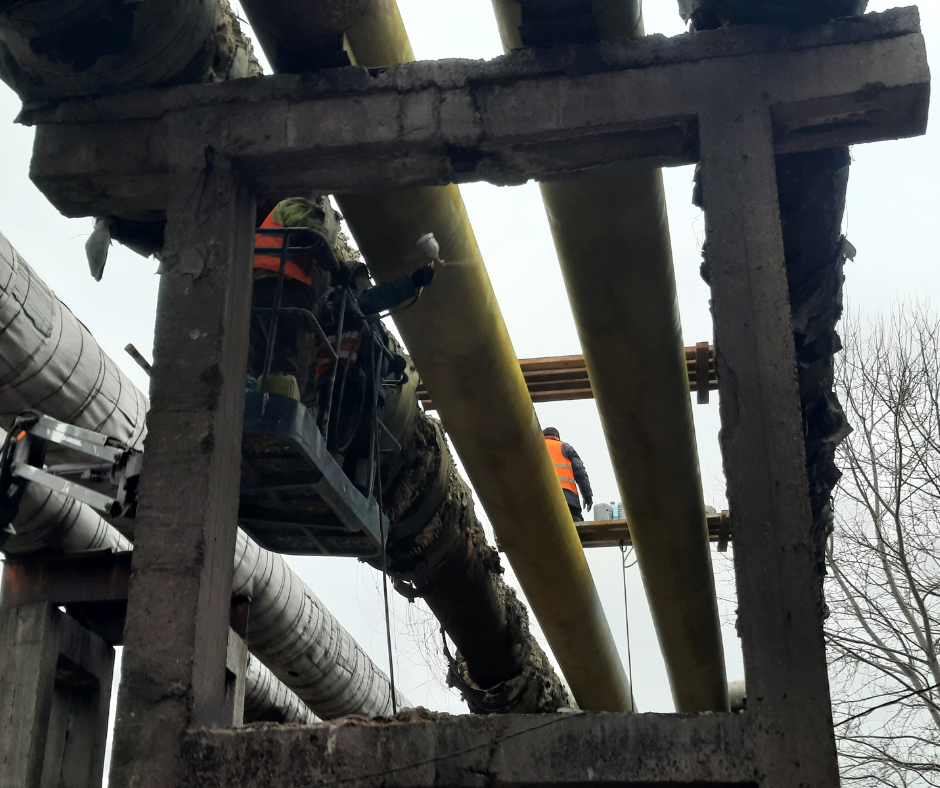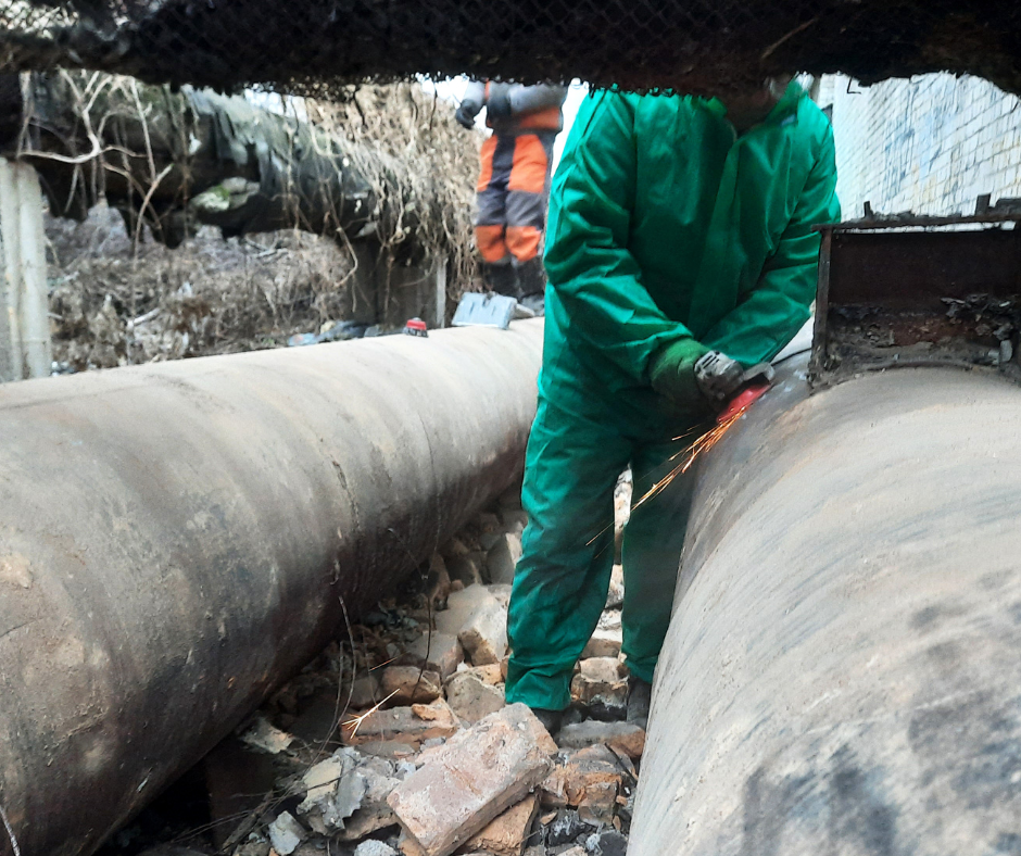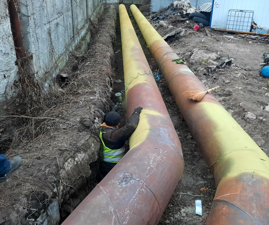 Після демонтажу старої ізоляції на окремих ділянках виявлено труби з ознаками корозії. Для підвищення надійності мереж і безаварійного постачання теплоносія ухвалено рішення застосувати двокомпонентне антикорозійне покриття, що забезпечить додатковий захист.