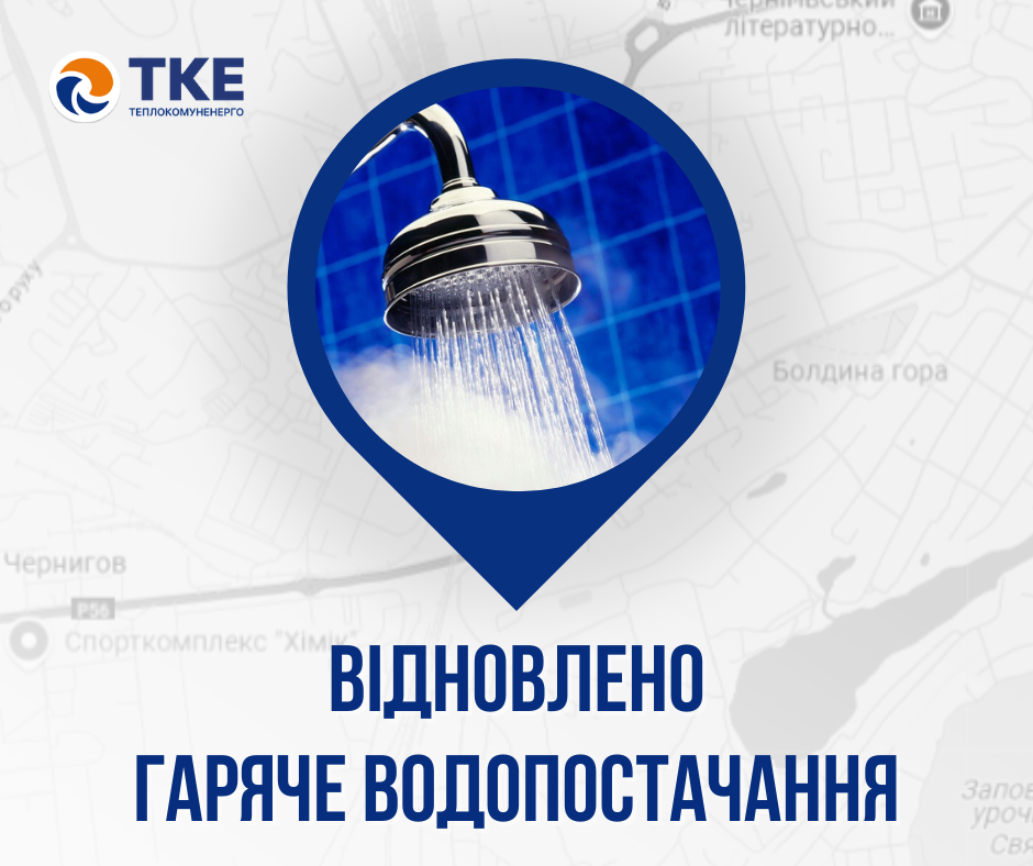 Об 11:00 27.03.2025 р., після закінчення ремонтних робіт персоналом цеху теплових мереж, відновлено гаряче водопостачання в будівлях за адресами: