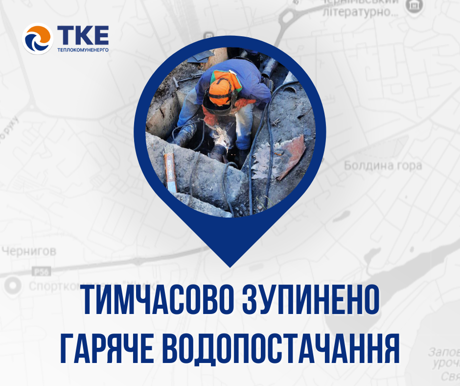 З 08:45 до 17:00 07.04.2025 р., у зв’язку з проведенням аварійно-ремонтних робіт, тимчасово припинено подачу гарячої води до будівель за адресами: