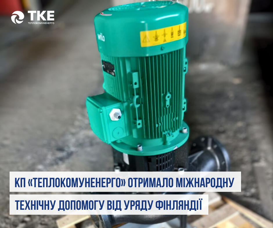 Комунальне підприємство «Теплокомуненерго» зміцнило свою технічну базу завдяки міжнародній підтримці — підприємство отримало сучасний насосний агрегат від Міністерства внутрішніх справ Фінляндії.