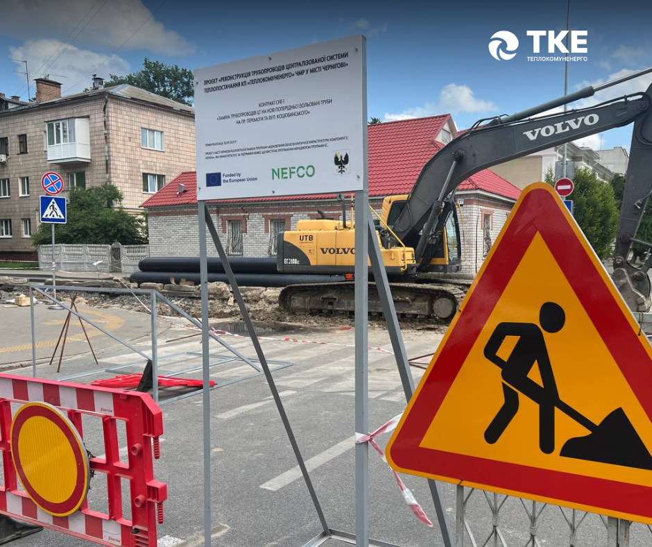 У Чернігові триває активна фаза реалізації масштабного проєкту з модернізації системи теплопостачання міста. Ремонтні роботи охоплюють критично зношені ділянки трубопроводів у межах проєкту «Реконструкція трубопроводів централізованої системи теплопостачання комунального підприємства „Теплокомуненерго“ Чернігівської міської ради». Ініціативу підтримує ЄС, а програмним менеджером виступає НЕФКО в межах Програми відбудови критичної інфраструктури – Компонент ІІ, Україна.