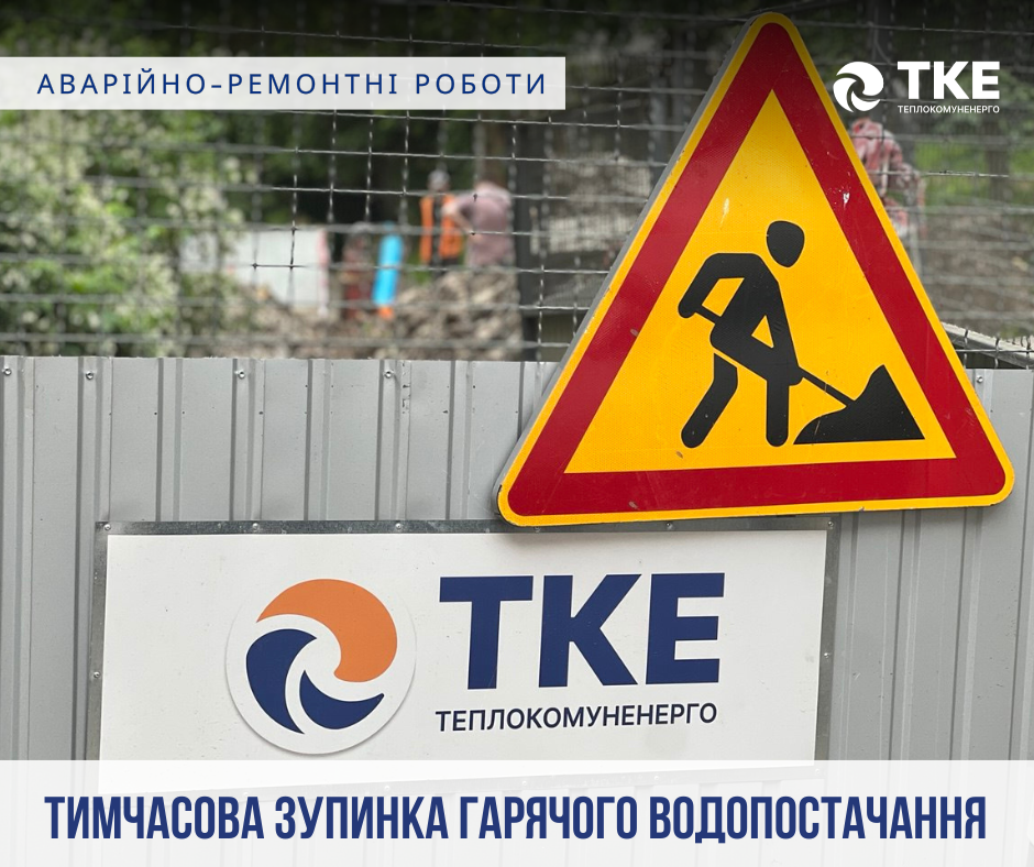 З 09:00 24.06.2025 р. у зв’язку з проведенням аварійно-ремонтних робіт відключено гаряче водопостачання в будинках за адресами: