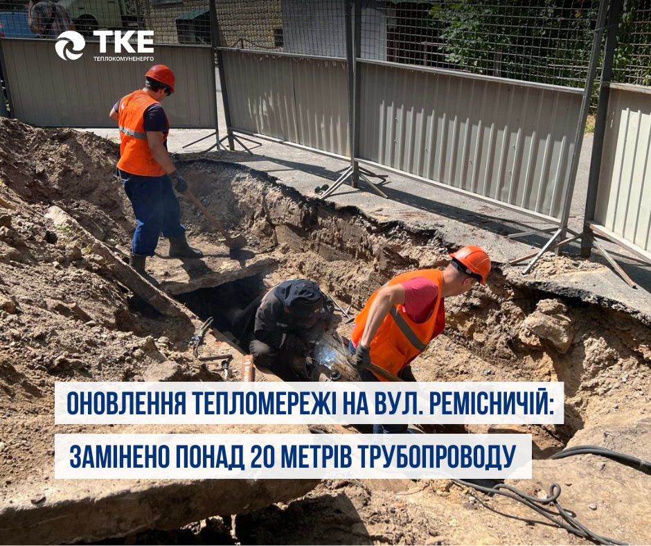 У результаті гідравлічних випробувань було виявлено пошкодження на ділянці трубопроводу по вулиці Ремісничій. Аварійний фрагмент тепломережі демонтовано, після чого здійснено заміну понад 20 метрів трубопроводу опалення діаметром 159 мм.