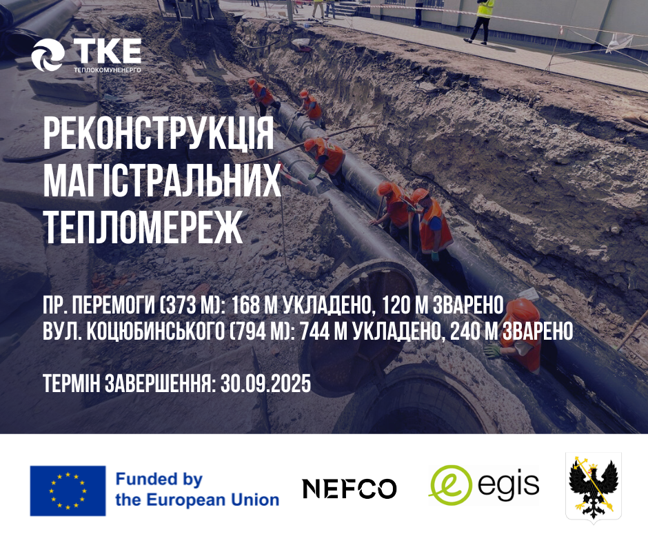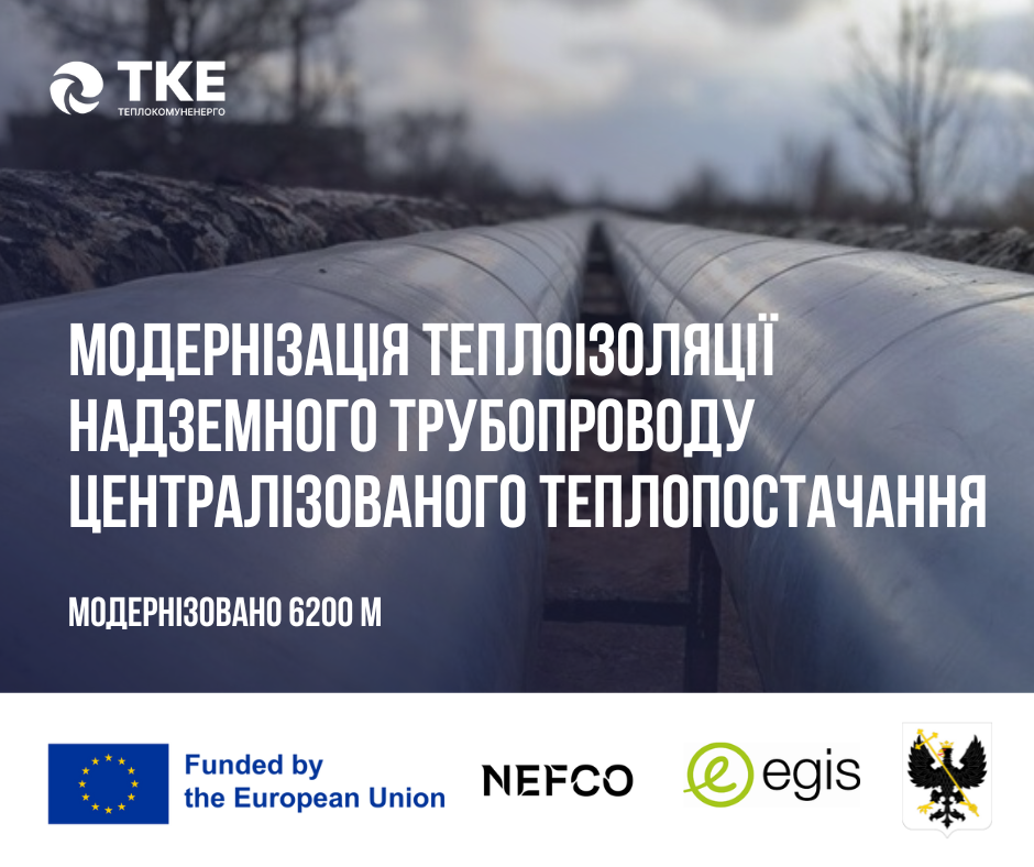 У рамках проєкту «Реконструкція трубопроводів централізованої системи теплопостачання комунального підприємства «Теплокомуненерго» Чернігівської міської ради», що фінансується Європейським Союзом за підтримки НЕФКО, що виступає програмним менеджером для Програми відбудови критичної інфраструктури – Компонент ІІ, Україна, проводиться заміна теплових магістралей із збільшенням діаметру з 478 мм до 530 мм: