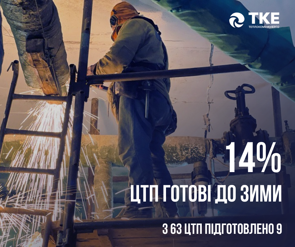 З 63 ЦТП підготовлено до опалювального сезону 9, що складає 14%. В повному обсязі виконано комплекс ремонтних робіт, а саме: