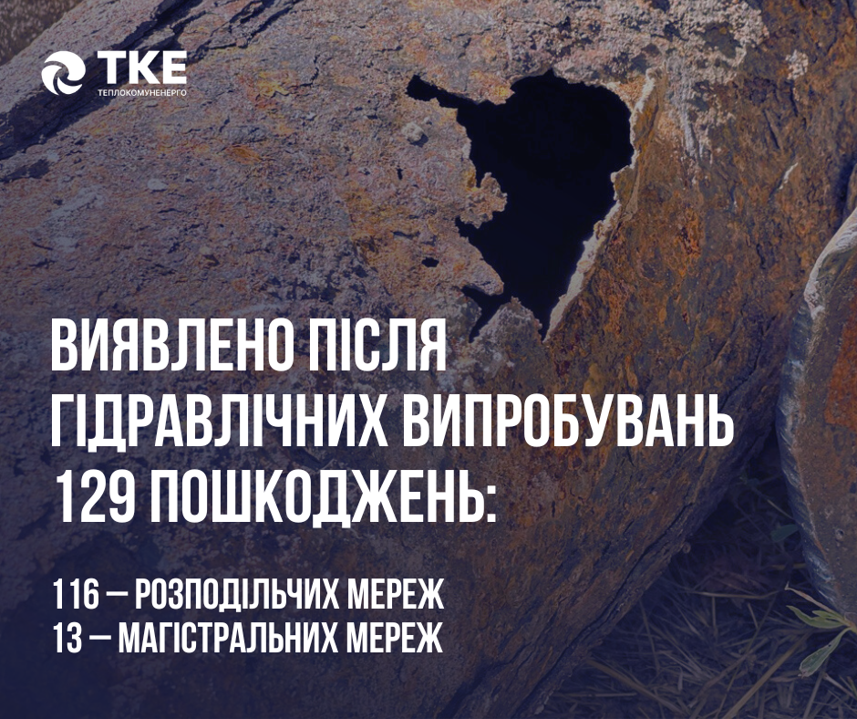 Виявлено 129 пошкоджень теплових мереж, з них: