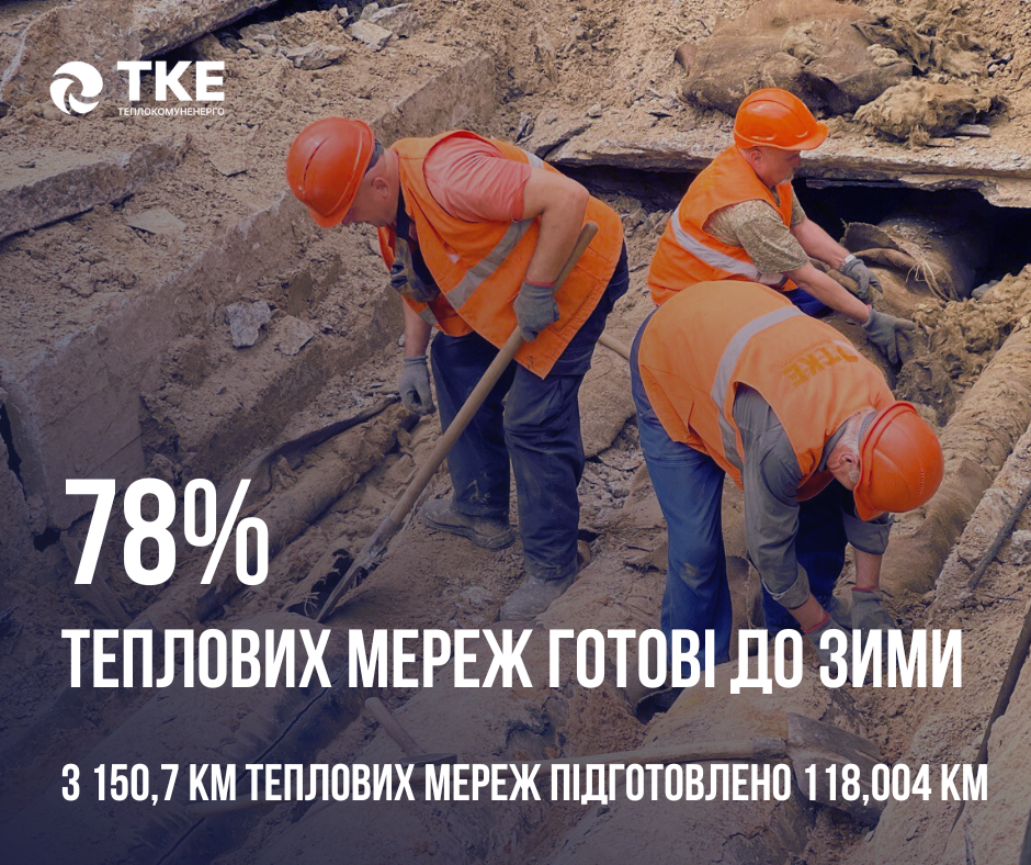 З 150,7 км теплових мереж підготовлено 118,004 км, що становить 78% від загальної протяжності тепломереж, які знаходяться в зоні обслуговування підприємства.