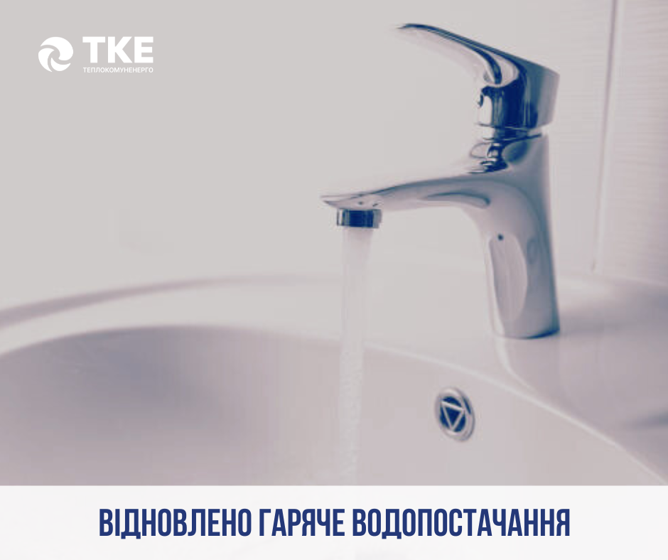 О 17:30 02.09.2025 р., після закінчення аварійно-ремонтних робіт, відновлено гаряче водопостачання в житлових будинках за адресами: