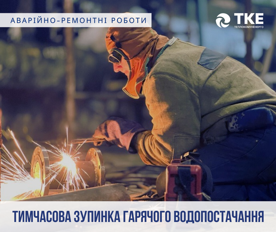 З 09:00 до 17:00 04.12.2025 р. у зв’язку з проведенням аварійно-ремонтних робіт буде тимчасово припинено гаряче водопостачання в житлових будинках за адресами: