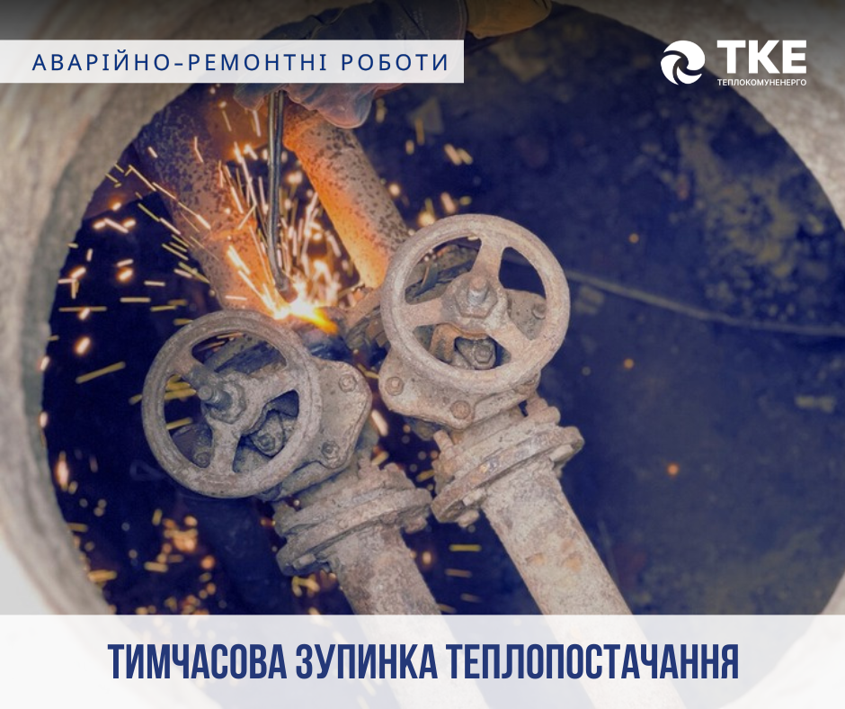З 09:00 до 17:00 04.12.2025 р., у зв’язку з проведенням аварійно-ремонтних робіт, припинено теплопостачання за адресами: