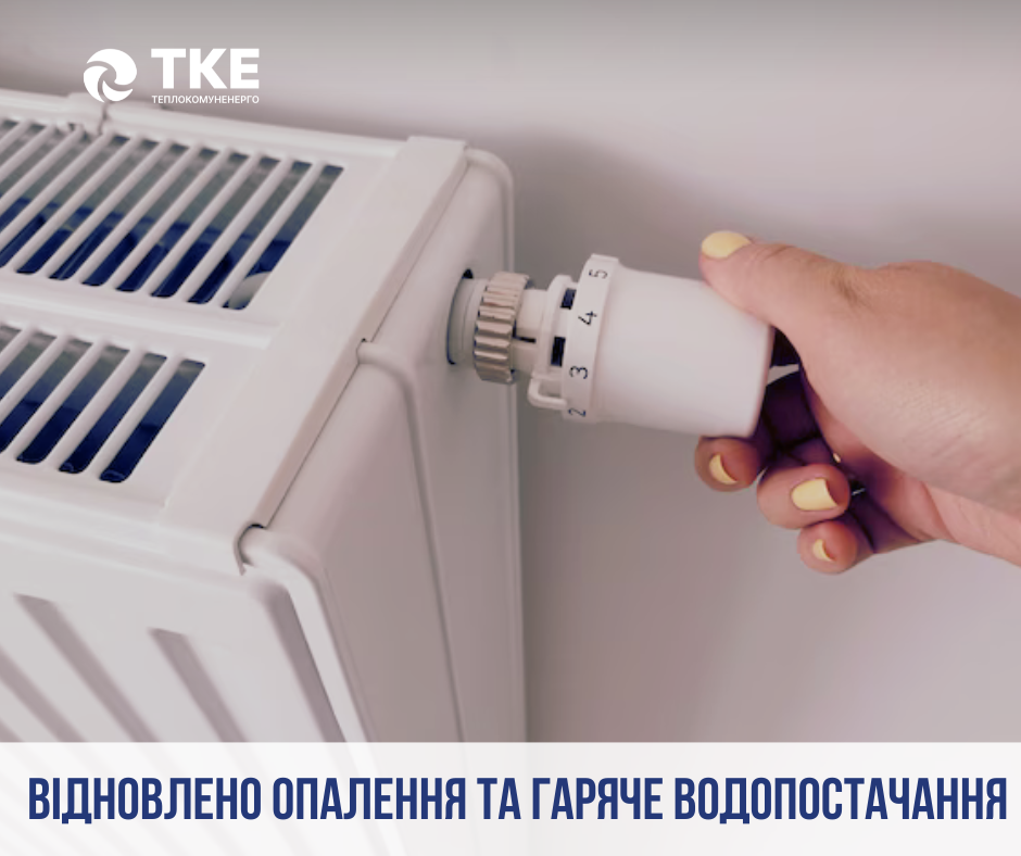 22.01.2026 р., після завершення аварійно-ремонтних робіт, о 15:00 було відновлено опалення, а о 16:00 — гаряче водопостачання в житлових будинках за адресами: