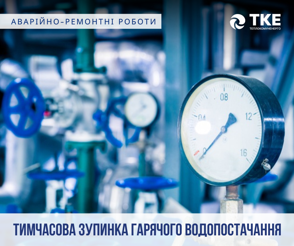 З 16:30 11.03.2026 р., у зв’язку з проведенням аварійно-ремонтних робіт, тимчасово відключено гаряче водопостачання в житлових будинках за адресами: