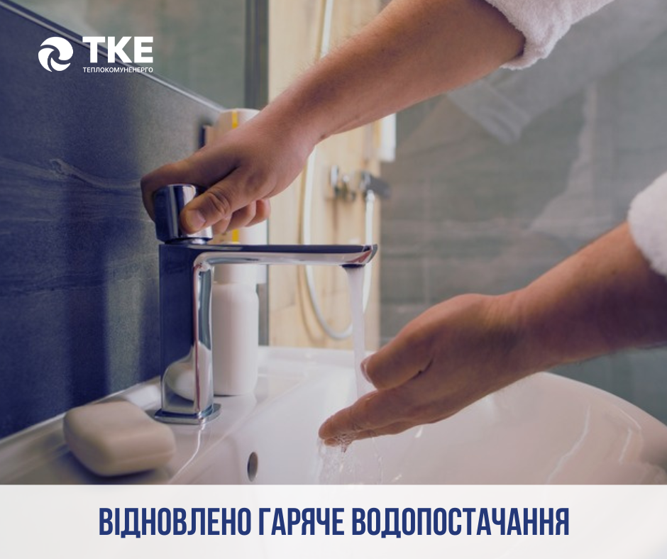 О 14:40 19.03.2026 р., після проведення аварійно-ремонтних робіт, відновлено гаряче водопостачання в житлових будинках за адресами: